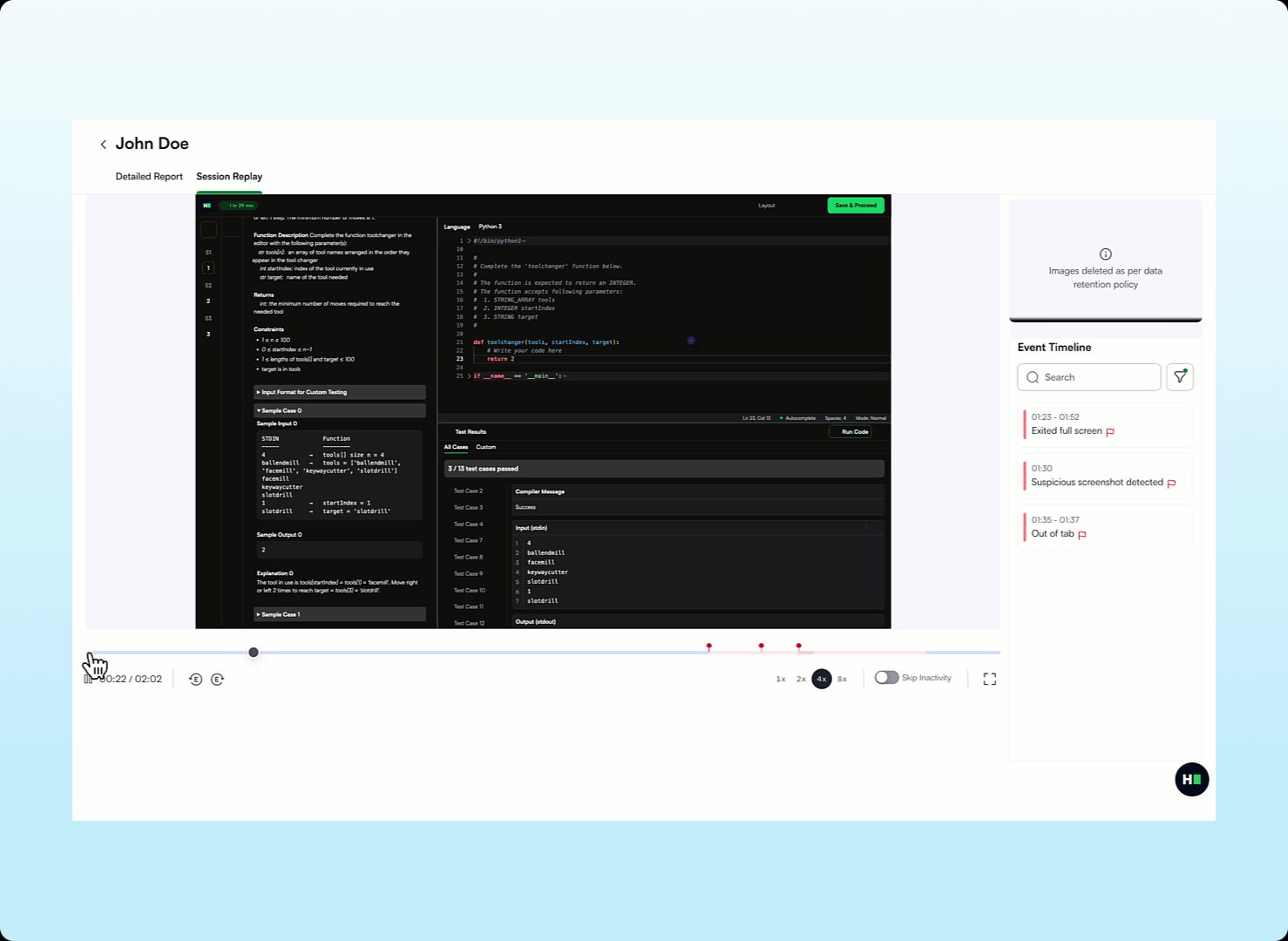 Get a complete and dependable record of candidate activity, even when sessions are interrupted by network issues, page refreshes, or accidental tab closures. Improved recovery and monitoring reduce incomplete playbacks, ensure fewer sessions are lost, and clearly surface any impacted sections.